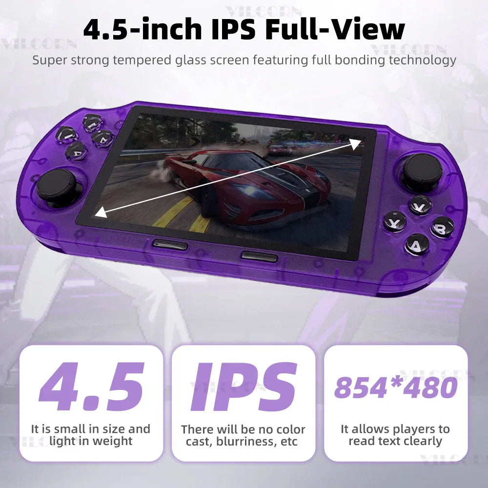 Experience nostalgia and next-gen performance with the SF3000 Retro Handheld Game Console. Featuring a 4.5-inch full-laminated IPS display with 854×480 resolution, it delivers vibrant, crystal-clear visuals for an immersive gaming experience.